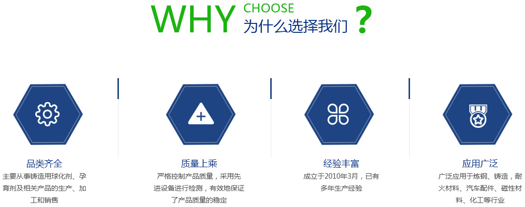 江蘇旦晨新材料科技有限公司、鎮(zhèn)江市勤成鑄造材料有限公司于2010年3月,成立于美麗的水上花園城市—江蘇揚(yáng)中,公司是一股份制企業(yè),注冊(cè)資本為200萬(wàn)人民幣,主要從事鑄造用球化劑、孕育劑及相關(guān)產(chǎn)品的生產(chǎn)、加工和銷售。 公司引進(jìn)日本企業(yè)的生產(chǎn)管理模式,半自動(dòng)化生產(chǎn)方式。目前生產(chǎn)能力:球化劑250T/月、孕育劑300T/月、鑄造相關(guān)品200T/月。為嚴(yán)格控制產(chǎn)品質(zhì)量,公司采用國(guó)內(nèi)的ICP-AES等離子體發(fā)射光譜儀對(duì)采購(gòu)原
